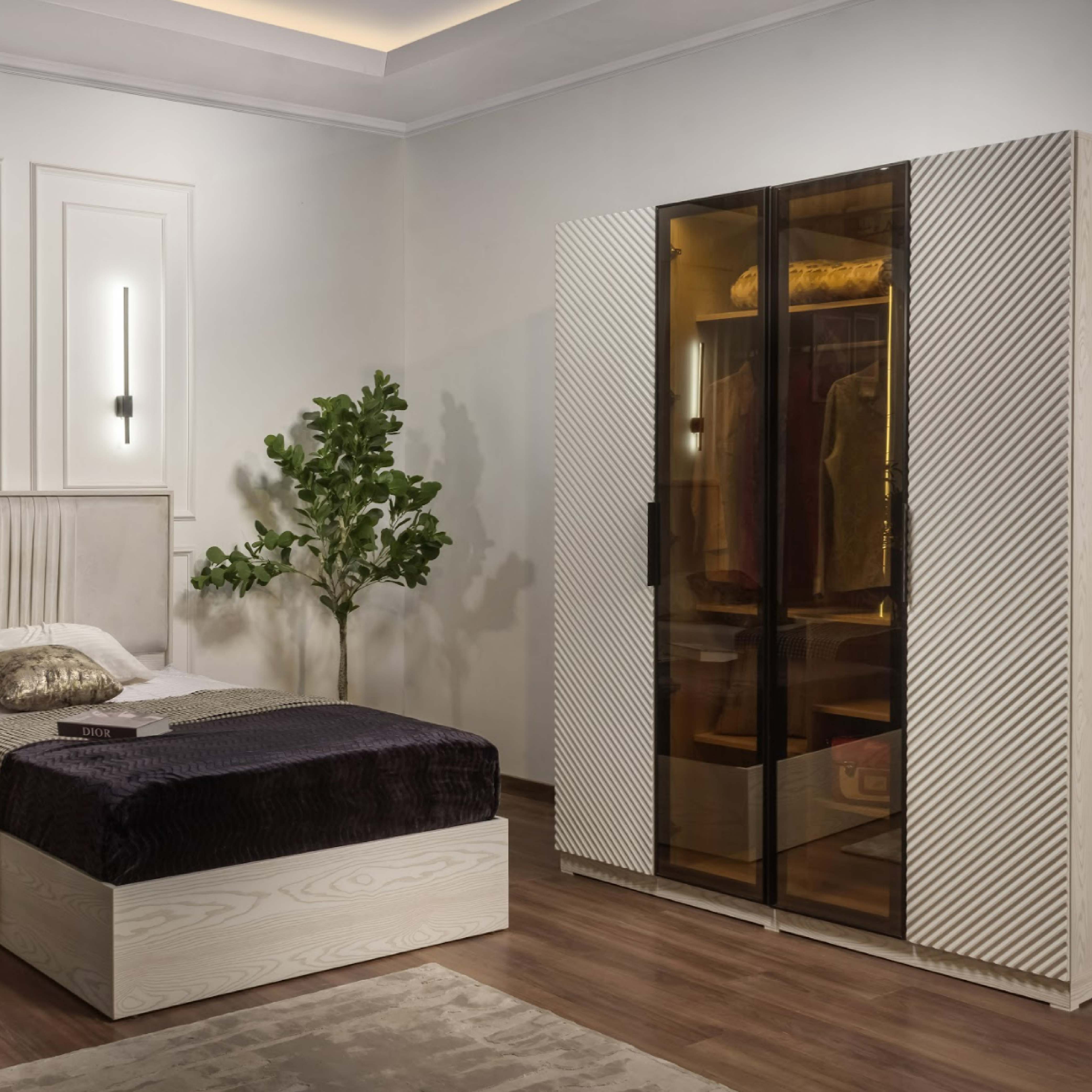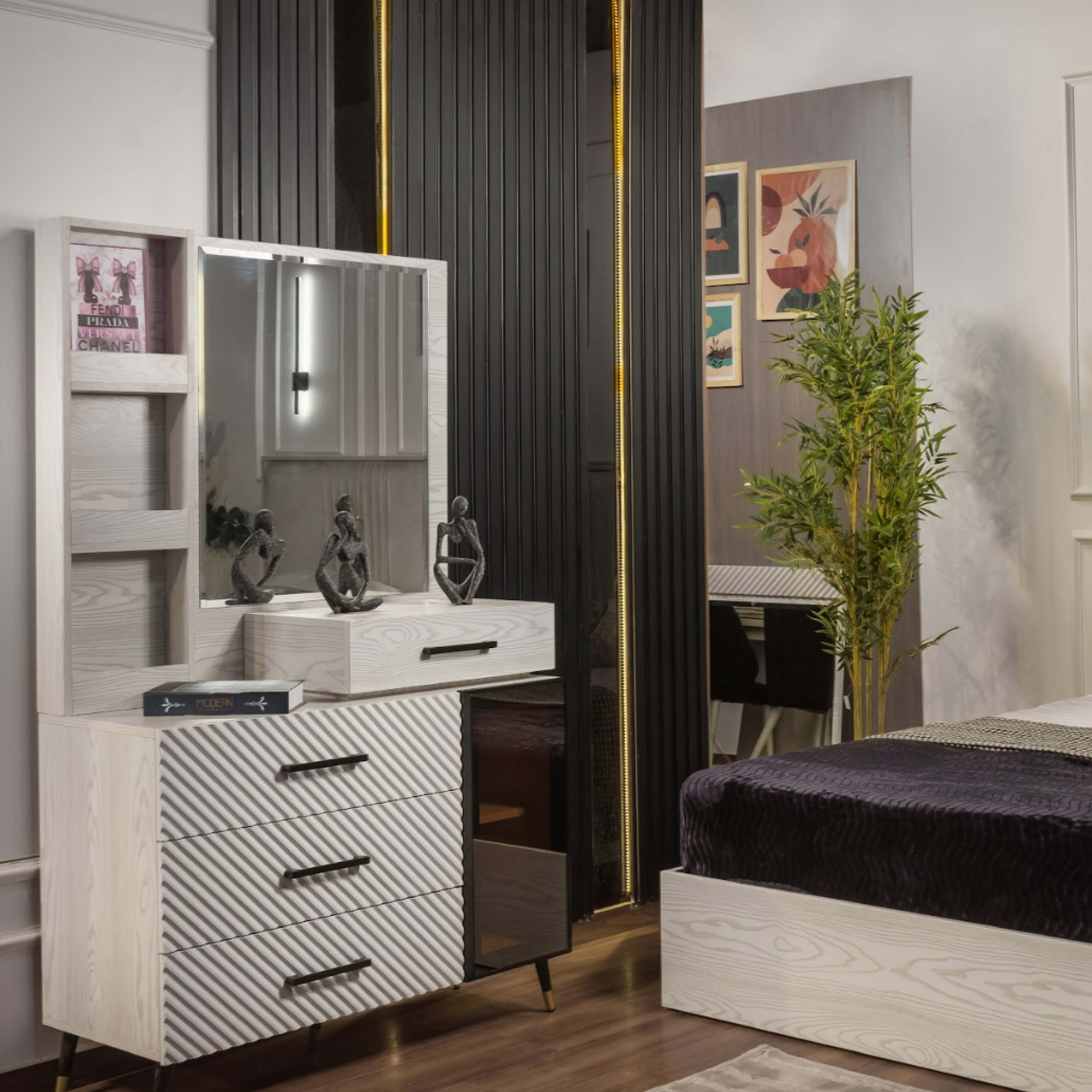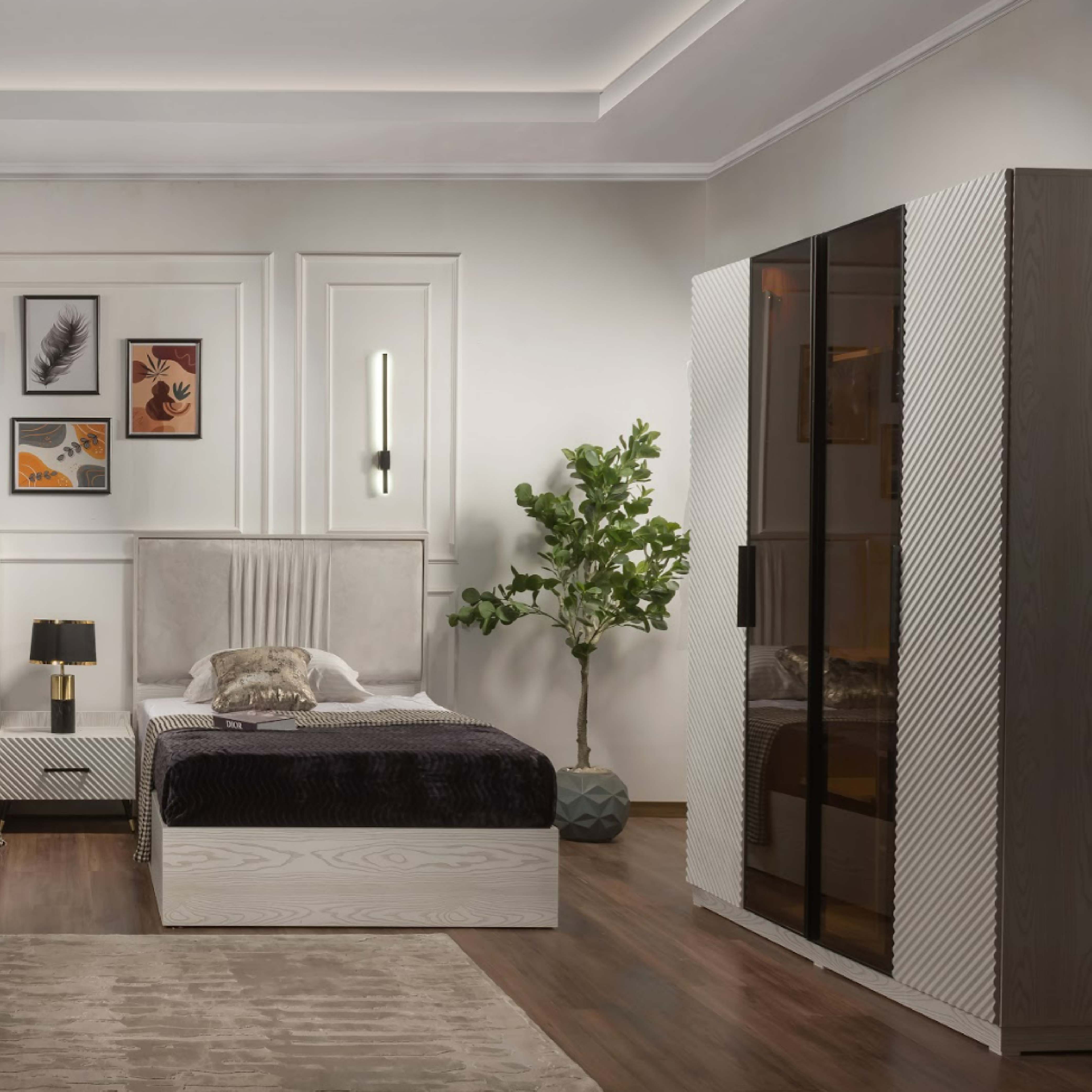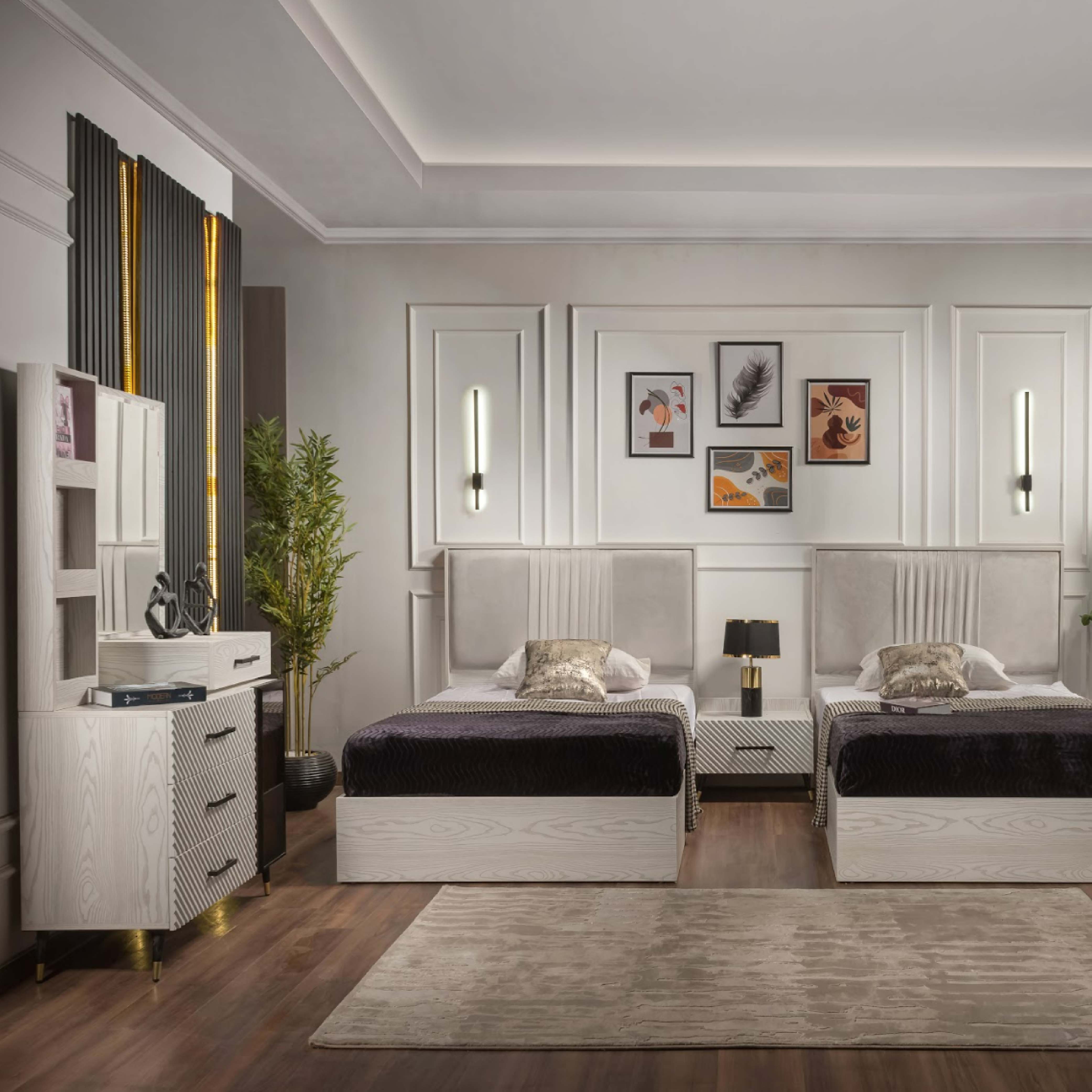 غرفة نوم اطفال مكونة من 2 سرير + 1 كمود + تسريحة + دولاب خشب ام دي اف + مكتب