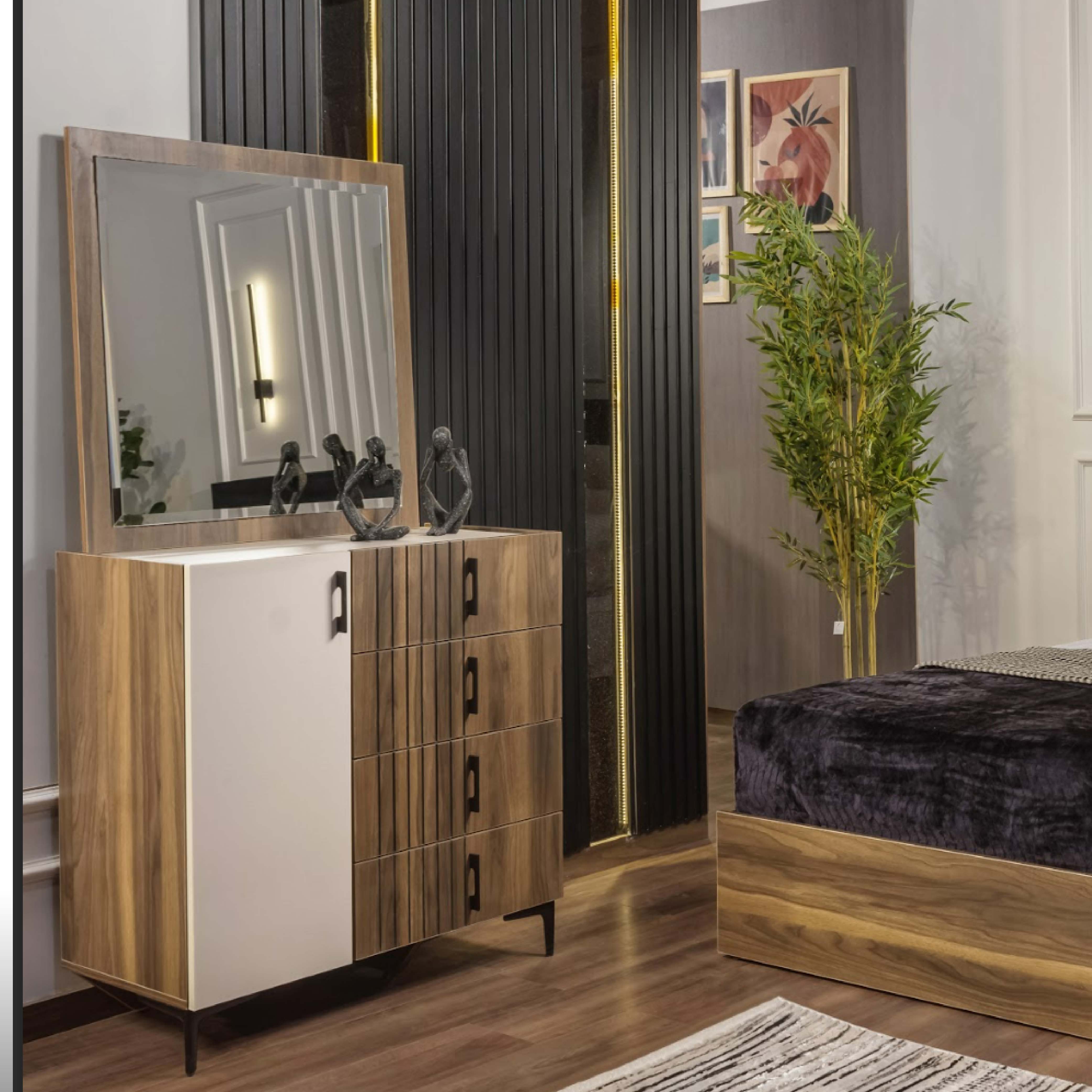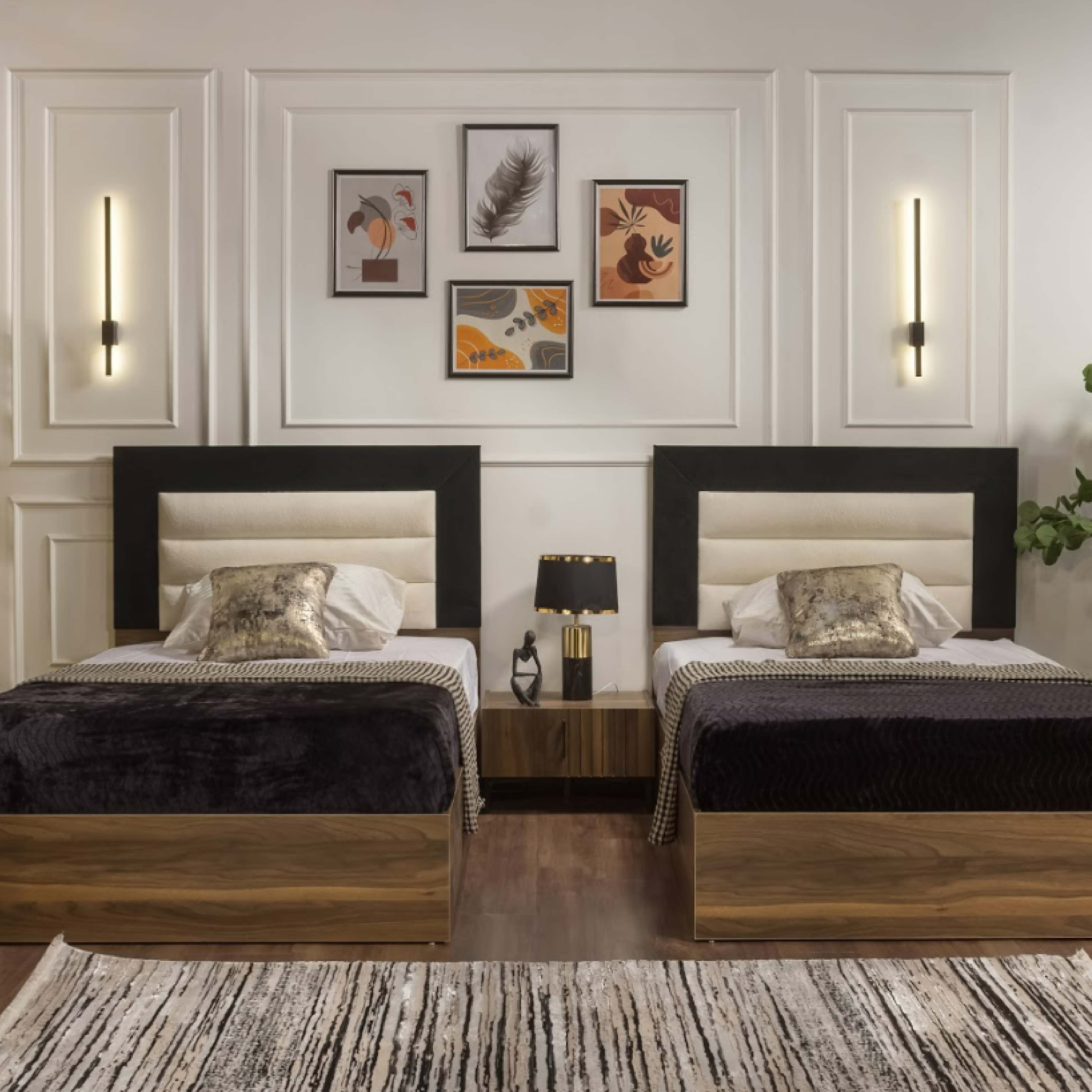 غرفة نوم اطفال مكونة من 2 سرير + 1 كمود + تسريحة + دولاب خشب ام دي اف + مكتب