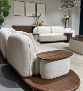 كنبة ٢ مقعد + كنبة ٣ مقعد + 1 فوتيه خشب زان احمر روماني ماكو فايبر كثافة ٣٥ سوبر سوفت Size : 240 – 200 – 110 Cm.