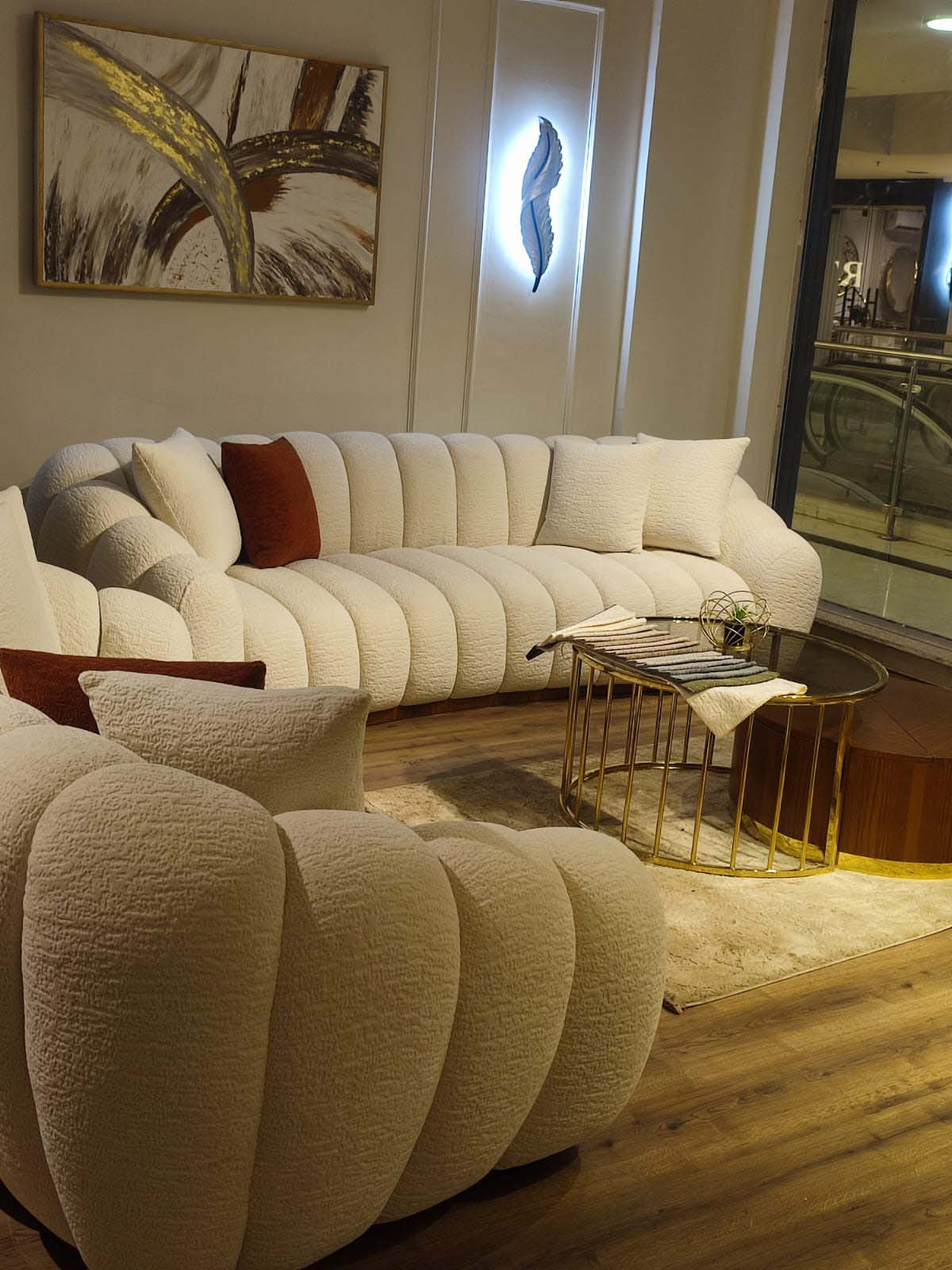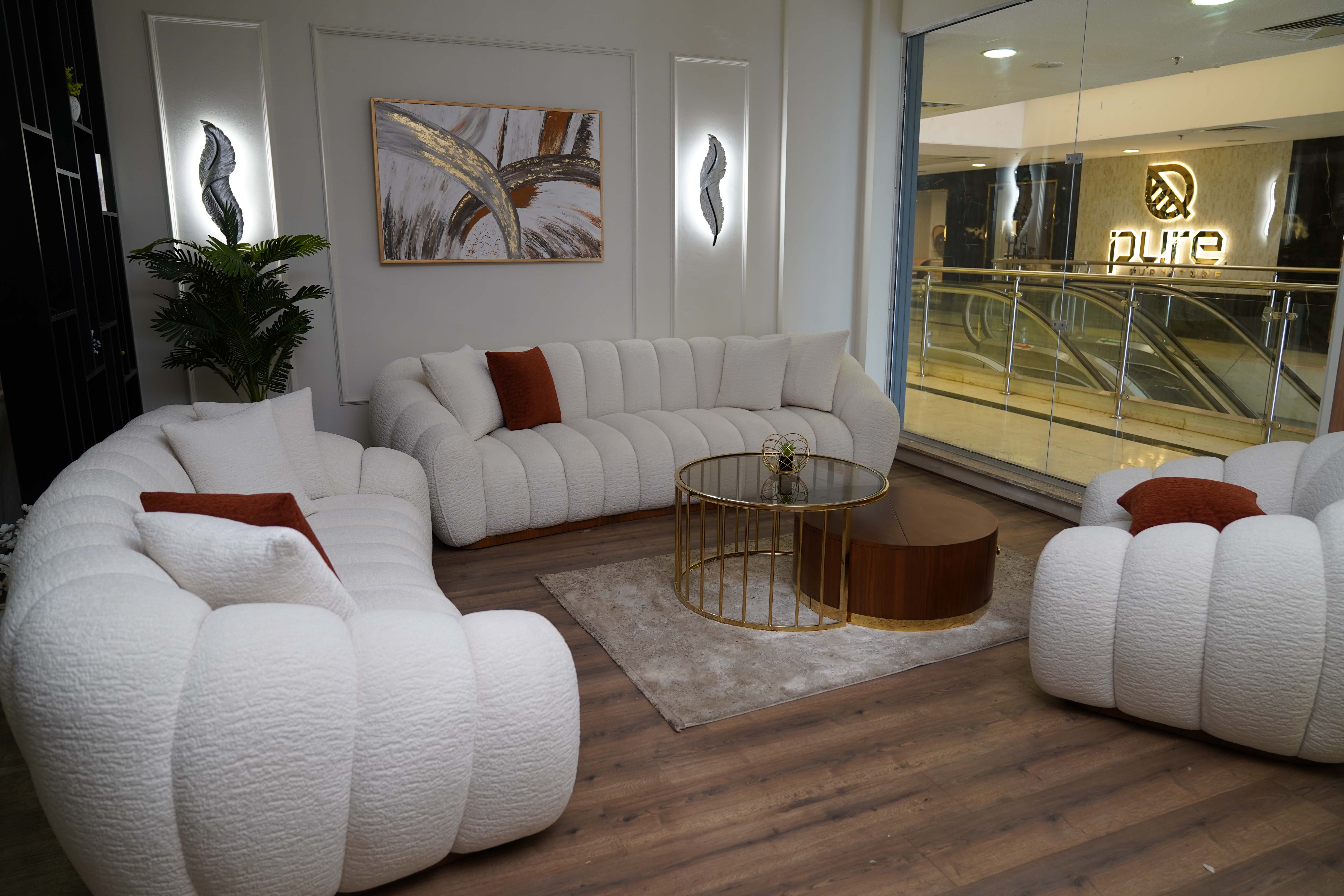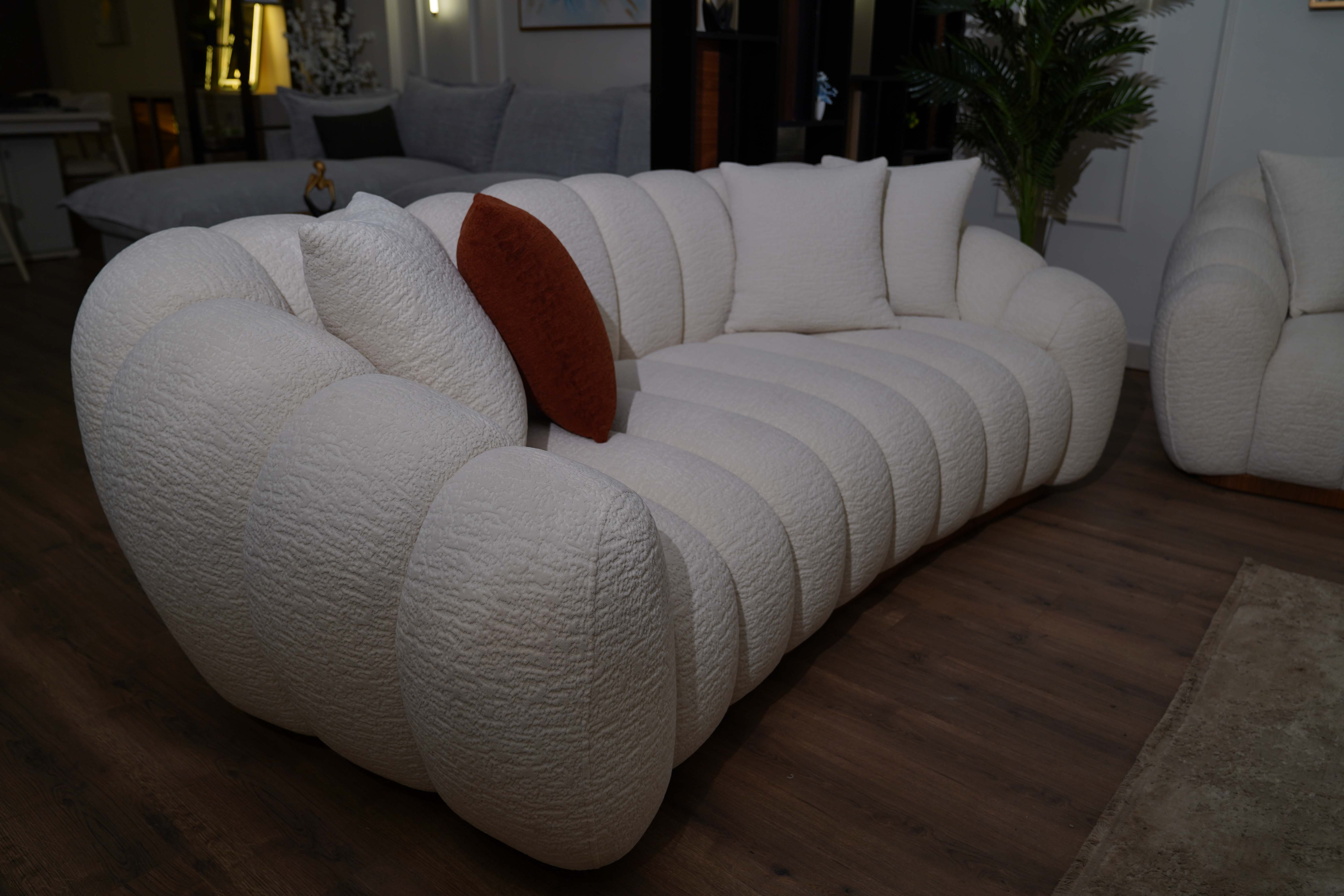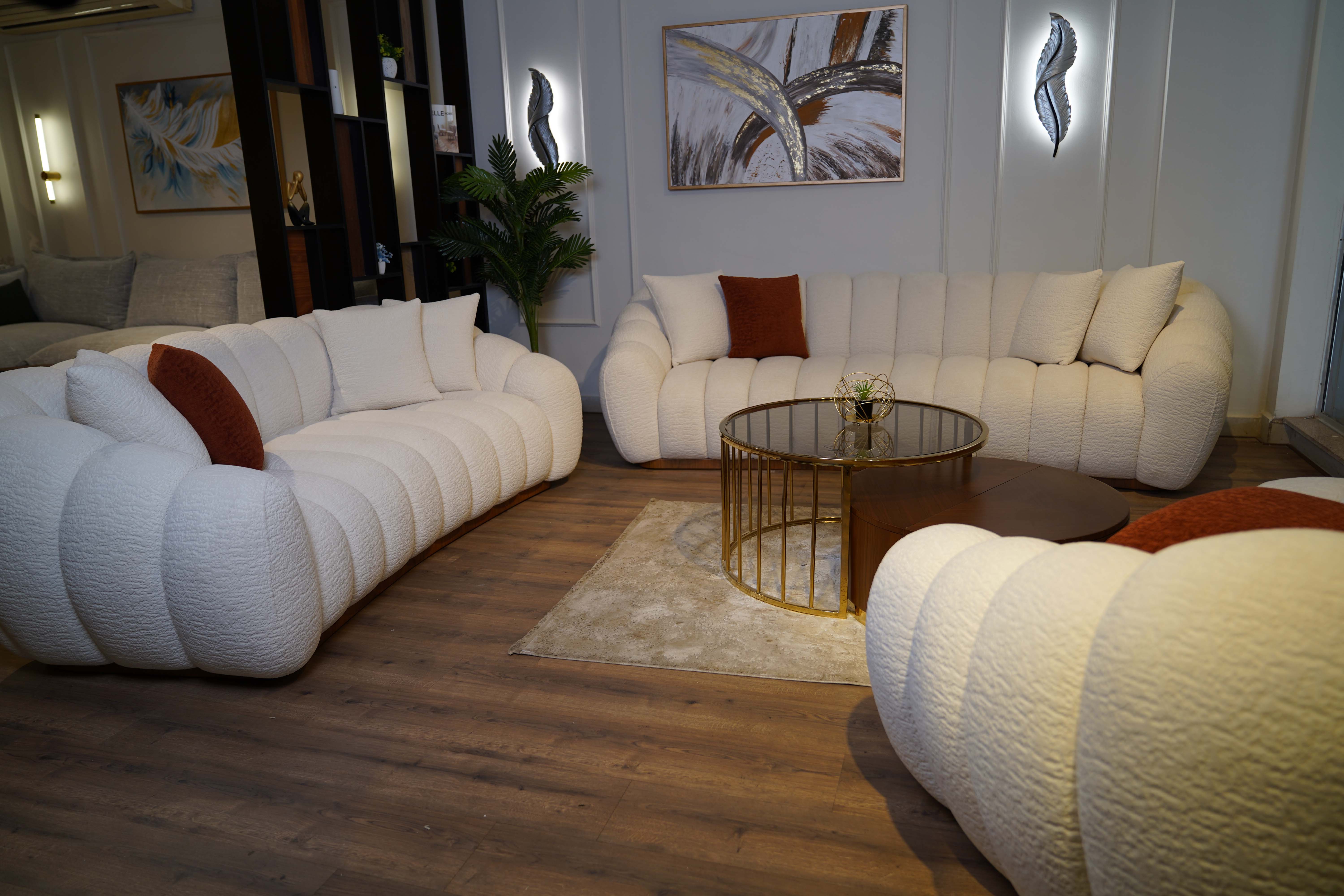 كنبة ٢ مقعد + كنبة ٣ مقعد + 1 فوتيه خشب زان احمر روماني ماكو فايبر كثافة ٣٥ سوبر سوفت Size : 240 – 200 – 110 Cm.
